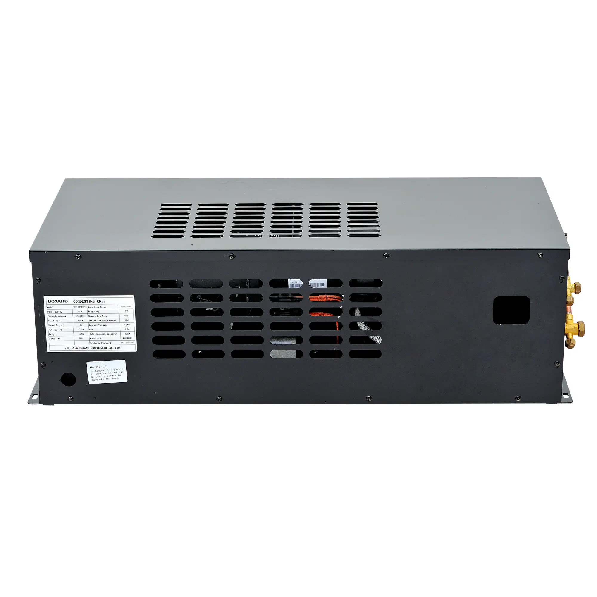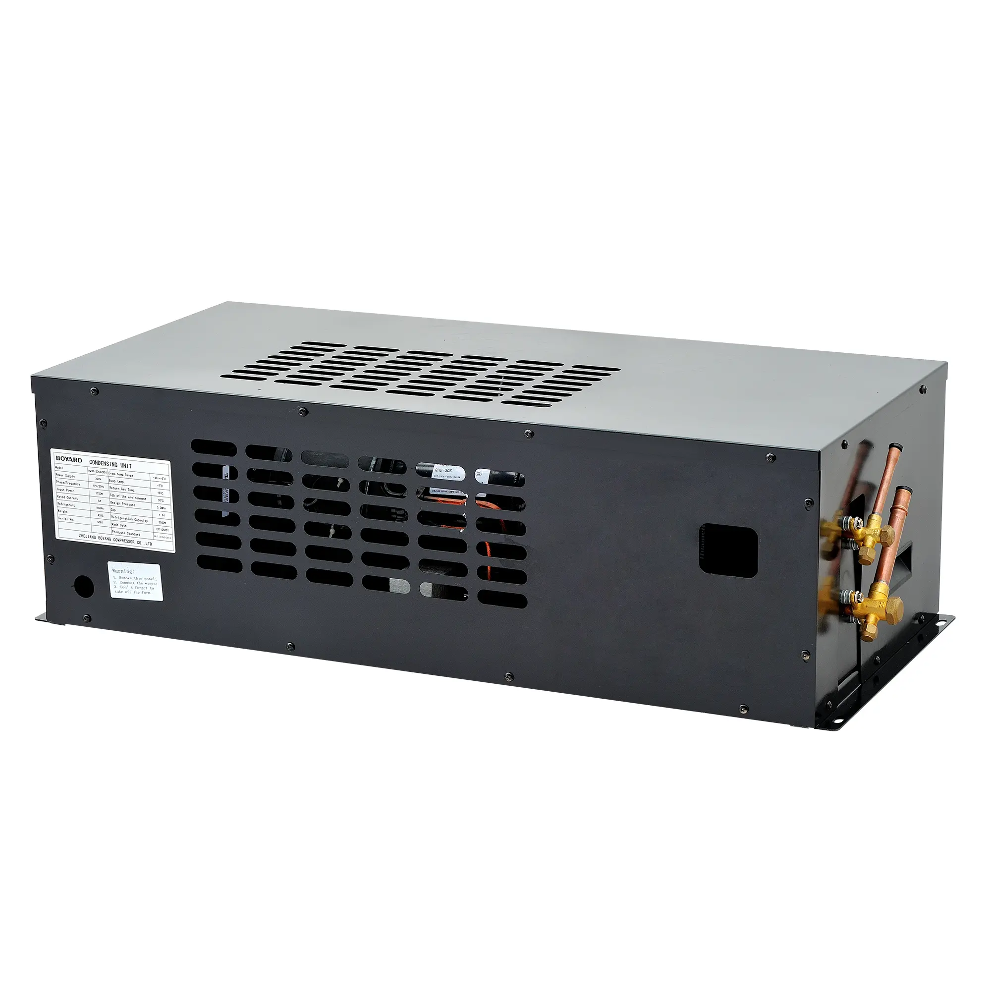 - Special liquid injection cooling tube design of the compressor ensures continuously working of the condensing unit under high ambient temperature.