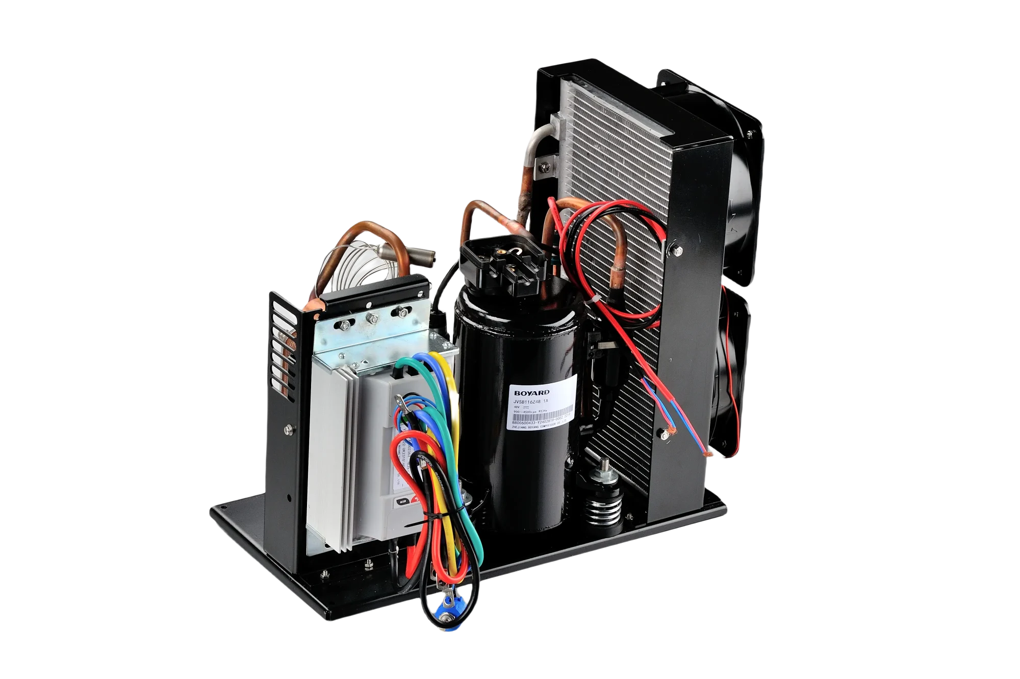 Boyard dc compressor is driven by 12V or 24V or 48V or 72V battery. The AC still runs smoothly when the truck stops the engine.