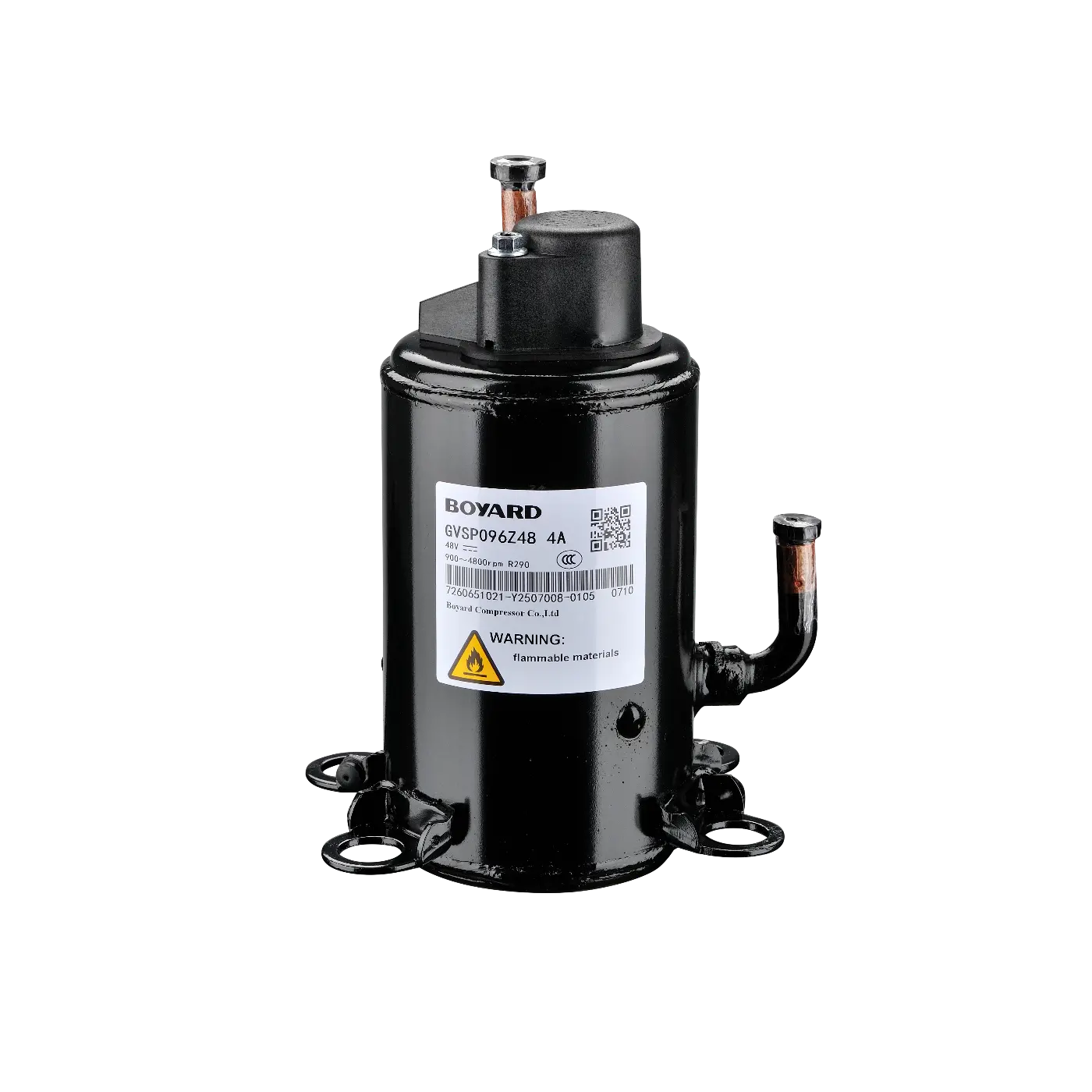 - HBP/MBP, 9.6cc, 48V DC, R290/R1270, Twin Cylinder Compressor for portable air conditioner, DC 48V vertical structure adaptable to vibration and all road conditions